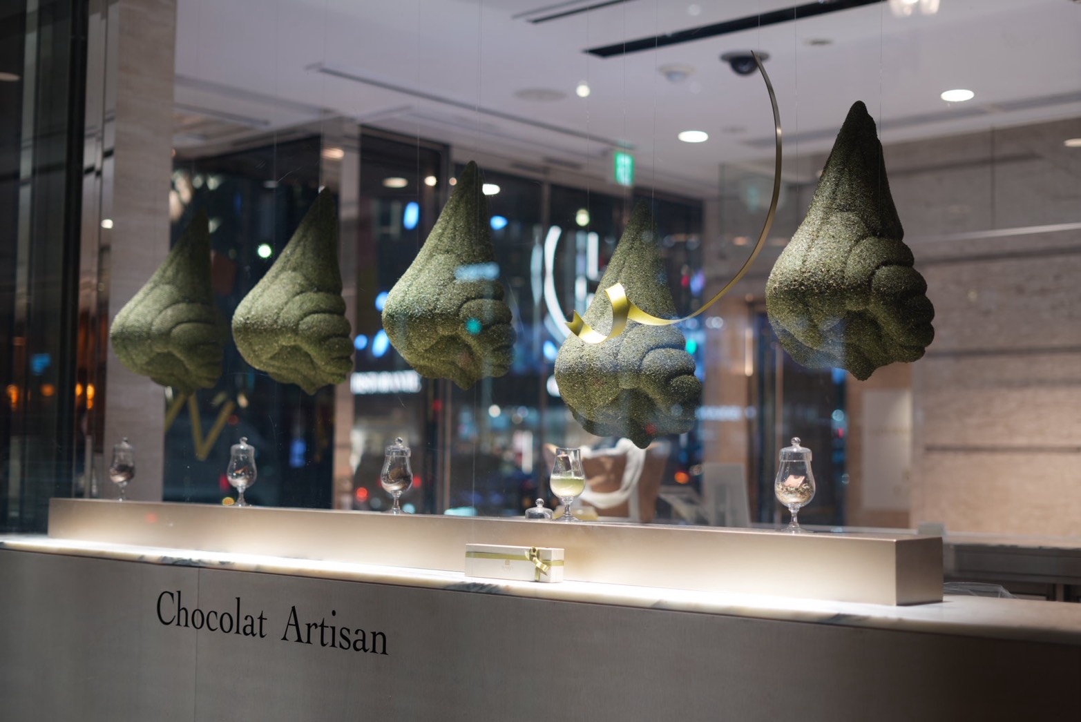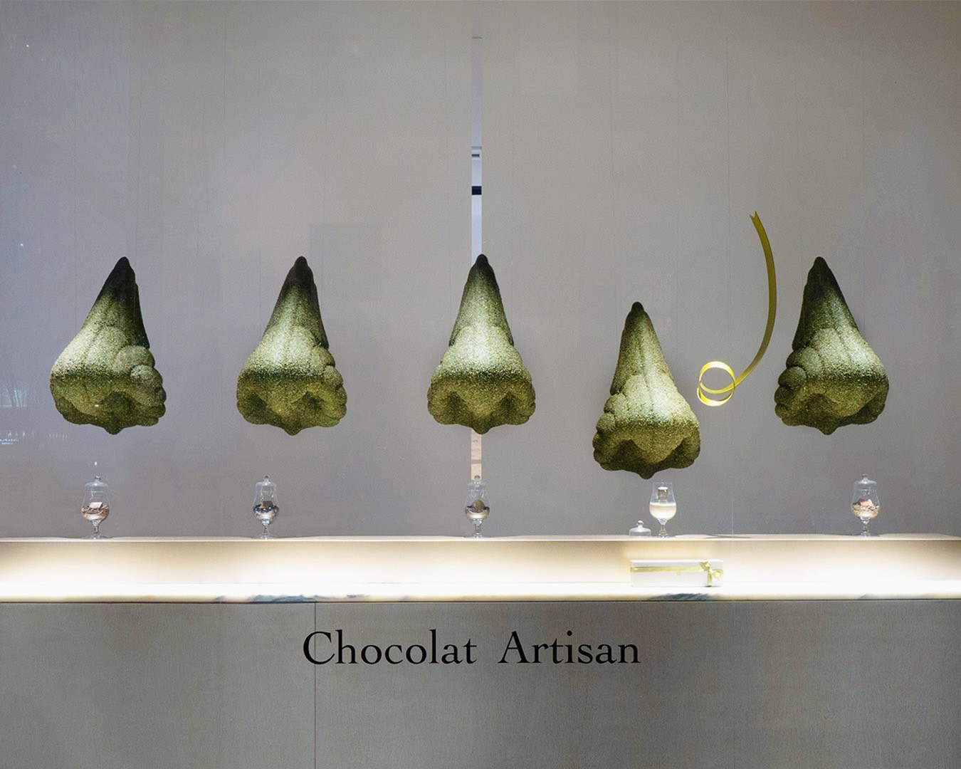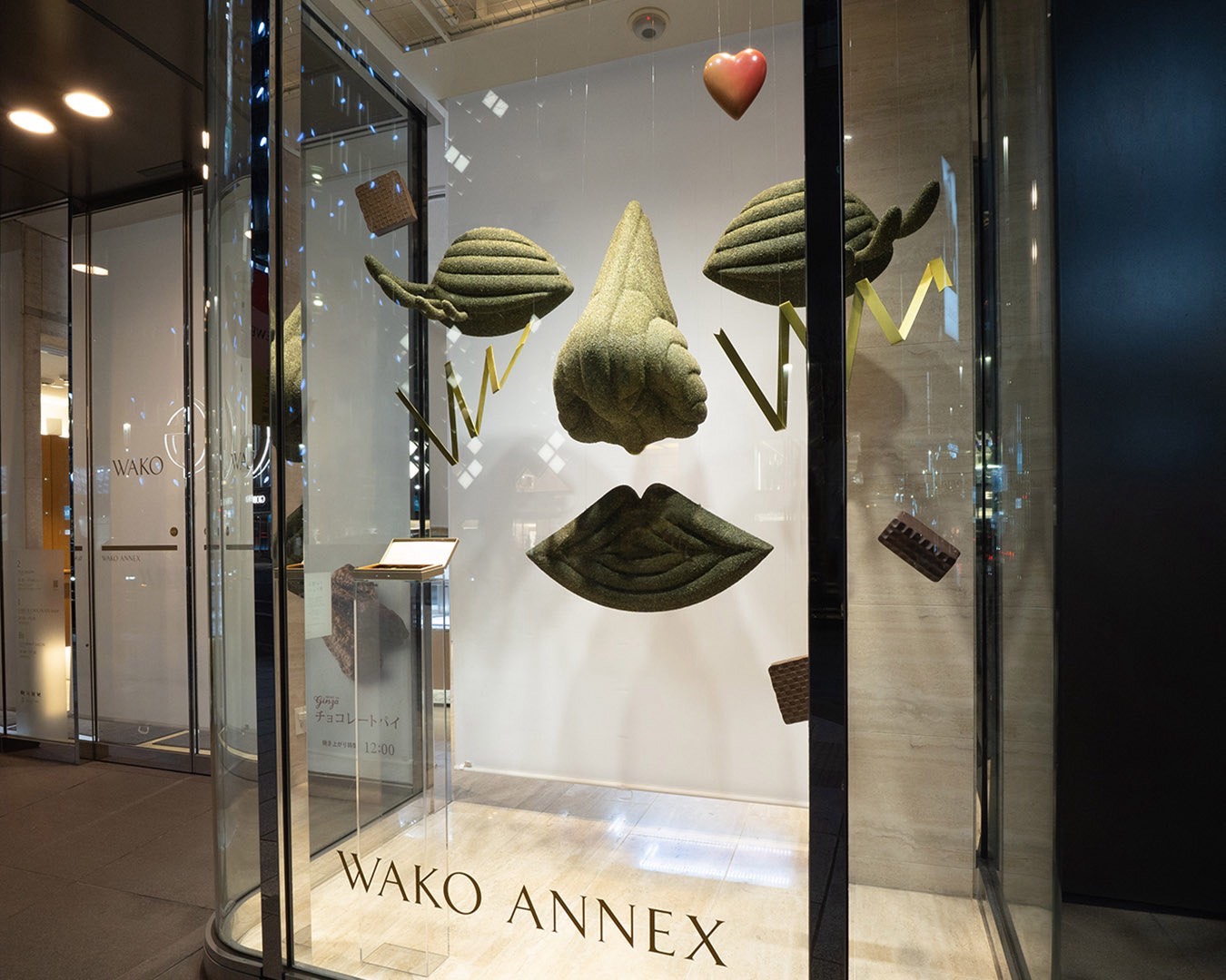 タイトル:その恋は、香りから。 茶畑が広がる美しい日本の風景と、 香りが鼻を抜けていく通り道を 感じさせるようなフォルムを 鼻と唇、まぶたに落とし込みました。 造形には、実際にお茶の葉を使用しています。 香りに包まれて、 ときめきを隠しきれない表情は まるで恋をしているよう。 香りに恋をする。 WAKO ×日本大学芸術学部デザイン学科 デザイン制作:酒向杏実